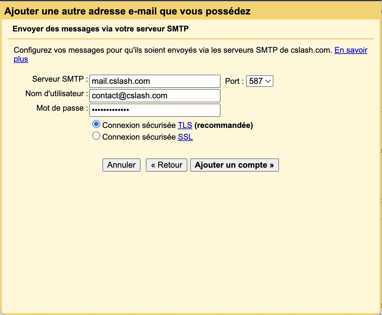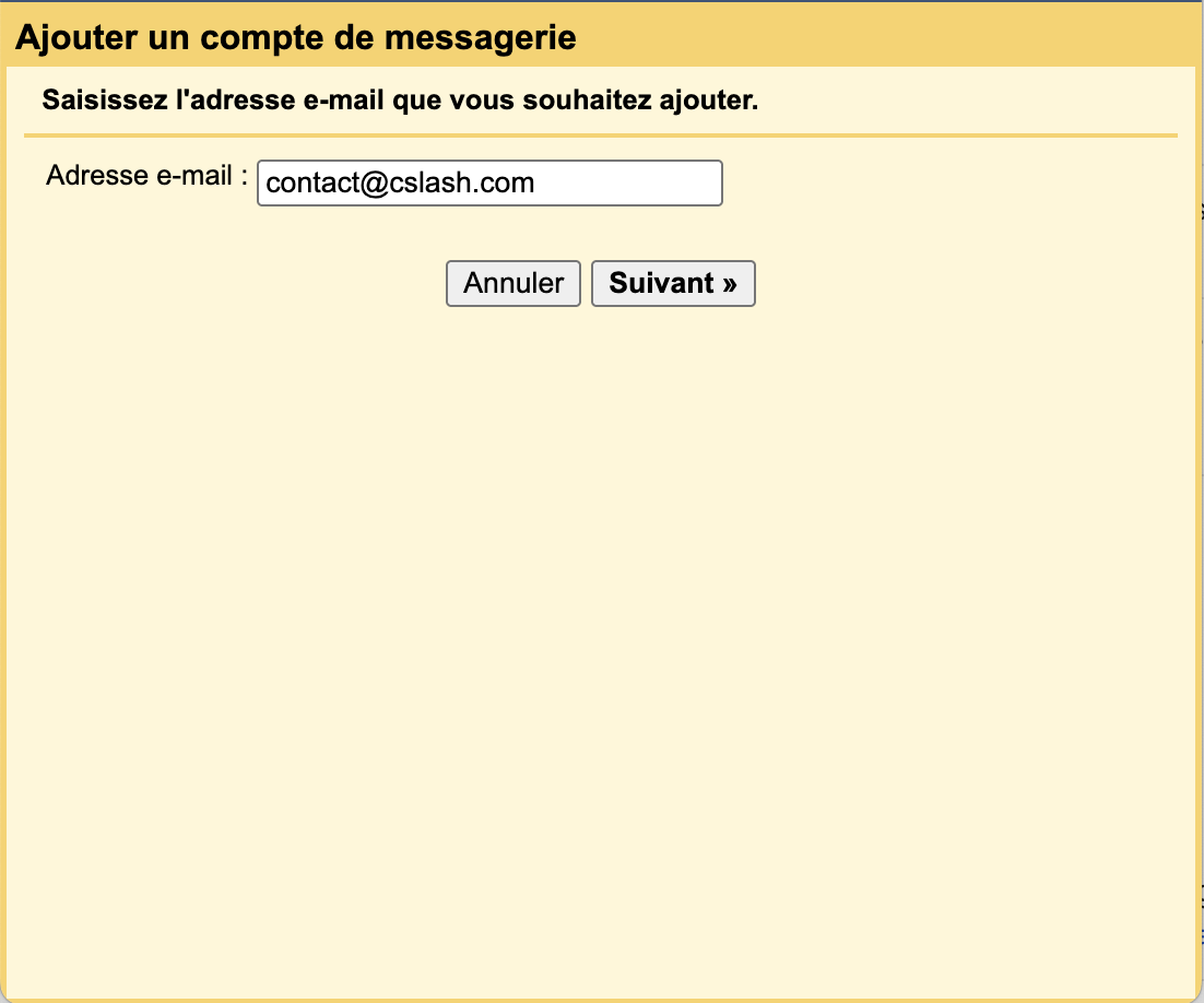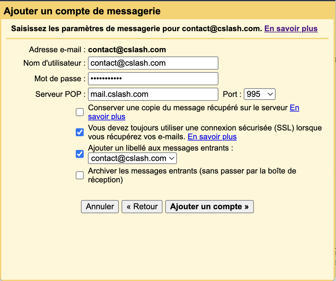Il est tout à fait possible de rattacher votre adresse électronique professionnelle hebergé dur cslash.com à votre adresse email existante.