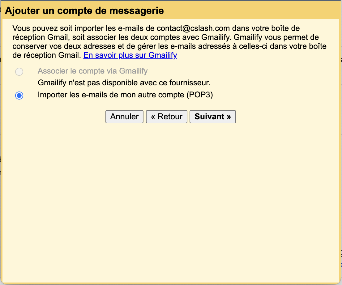 - GMail tranfere les emails avec un delai de 10-15 minutes depuis la boite mail sur le serveur cslash.